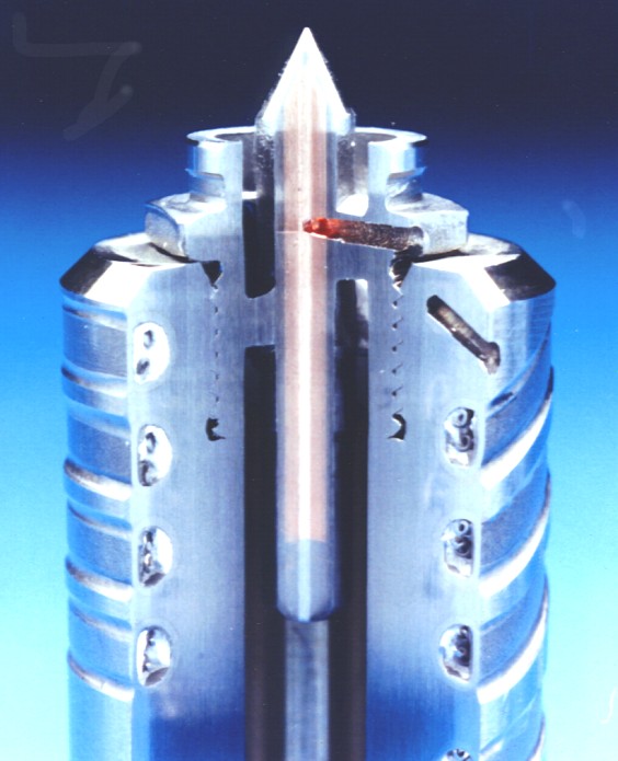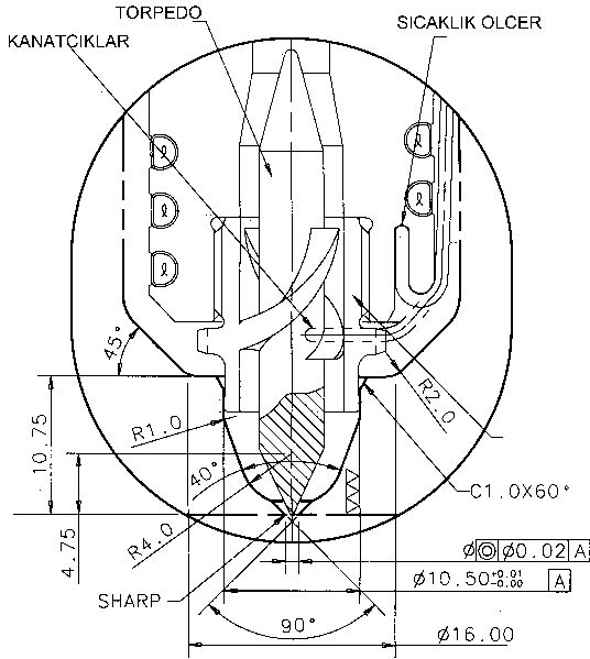 Şekil-2 B Sıcak yolluk memesi ucuna vidalanmış torpedo ucun kesit fotoğrafı