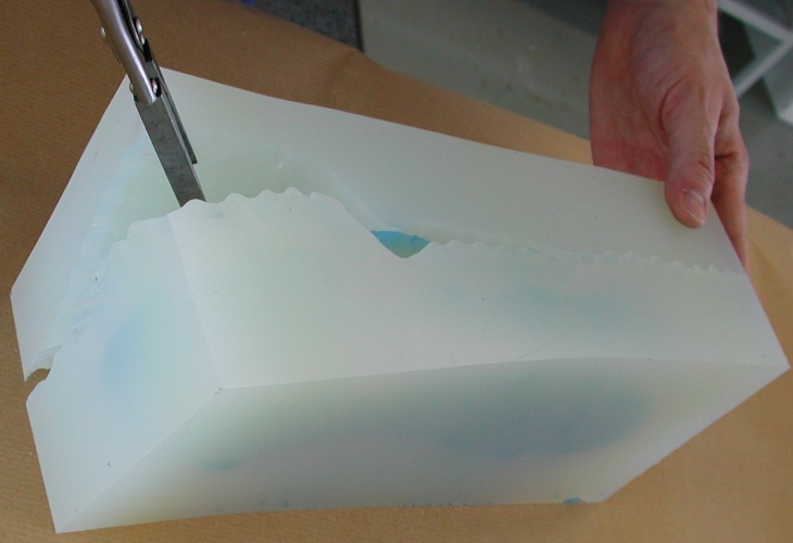 5. Sertleşen silikon daha önceden belirlenmiş ayrılma düzleminden ayrılır. Modelin çıkartılması ile dökmek istediğimiz parçanın şeklinde bir boşluk elde edilmiş olur.