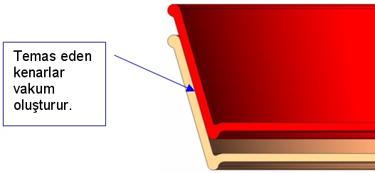 - Ürünler iç içe geçebilecek ve vakum oluşturmayacak şekilde tasarlanmalıdır. Vakum iç içe geçen ürünlerin, ayrılmalarını zorlaştırır. Eğer bu açı verilmesi zorunlu ise, ürünün iç tarafına en az üç tane feder konularak, ürün yan duvarlarının birbirine değmesi önlenmelidir.