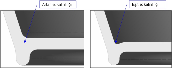 - Et kalınlığı mümkün olduğunca eşit tutulmalıdır. Artan et kalınlıkları, farklı soğuma hızlarından dolayı, bölgesel çöküntüler oluşturur.