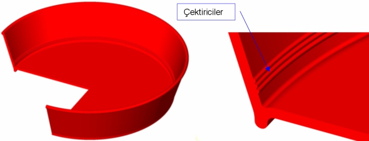 - Ürünün, kalıbın hareketli kısmında kalması için, hareketli çekirdek üzerine, estetik kusur yaratmayacak büyüklük ve formda çekiciler (ters açılar/undercuts) atılmalıdır.