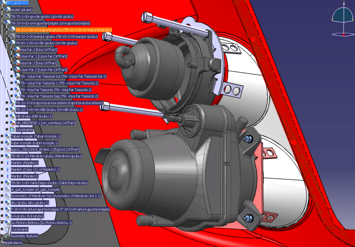 Analiz çalışmalarında yine CATIA'nın analiz modüllerini kullanabildiğimiz gibi parçanın geometrisine ve kullanım amacına uygun olarak daha farklı programlar da kullanıyoruz. Bu analiz çalışmalarında daha çok taşıyıcı gruplar ve emniyet parçaları üzerinde yoğunlaşıyoruz. Zaten belli parçalar fiziksel olarak yine resmi kurumlar tarafından teste tabii tutuluyorlar. Örnek olarak kabinlere Ankara'da değişik testler uygulanıyor. Burada kabin karkasına değişik açılardan yüklemeler yapılarak sürücünün yaşam alanına bir müdahale olup olmadığı inceleniyor ve sonuçlarına göre kabinler belge alıp seri olarak üretilebilir duruma gelebiliyorlar. Biz bu tip testleri sanal ortamda gerçekleştirilerek ortaya çıkan sonuçlara göre zayıf görünen yerlerde gerekli iyileştirmeleri yapıyoruz. Böylelikle başarısız testler sonucunda oluşabilecek olan zaman kaybı, maliyet artışı ve prestij kaybının önüne geçiyoruz.