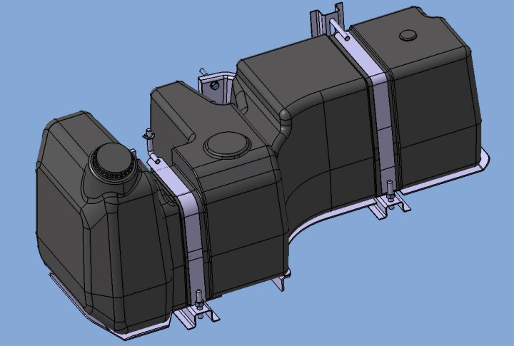 Yakıt deposu çalışması savurma döküm tekniğine uygun olarak yapıldı. Bu üretim tekniğinin verdiği esneklik sayesinde, depo hacmini yüksek tutabilmek amacıyla çok farklı geometrik yüzeyler kullanılarak mümkün olan tüm boş hacim değerlendirildi.