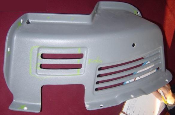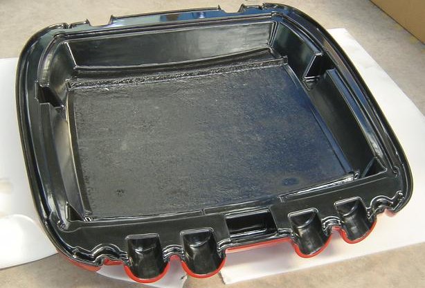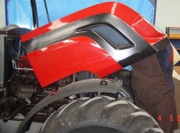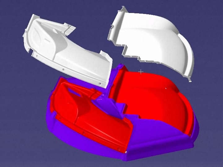 Seri üretimde el yatırma yöntemiyle Polyester'den üretilecek olan ön kaporta parçasının dört parçadan oluşan kalıbı... Bu kalıp daha sonra seri üretim için de model almak amacıyla kullanılmıştır. Model almadan önce belirli sayıda parça doğrudan bu kalıptan alınabilmektedir.