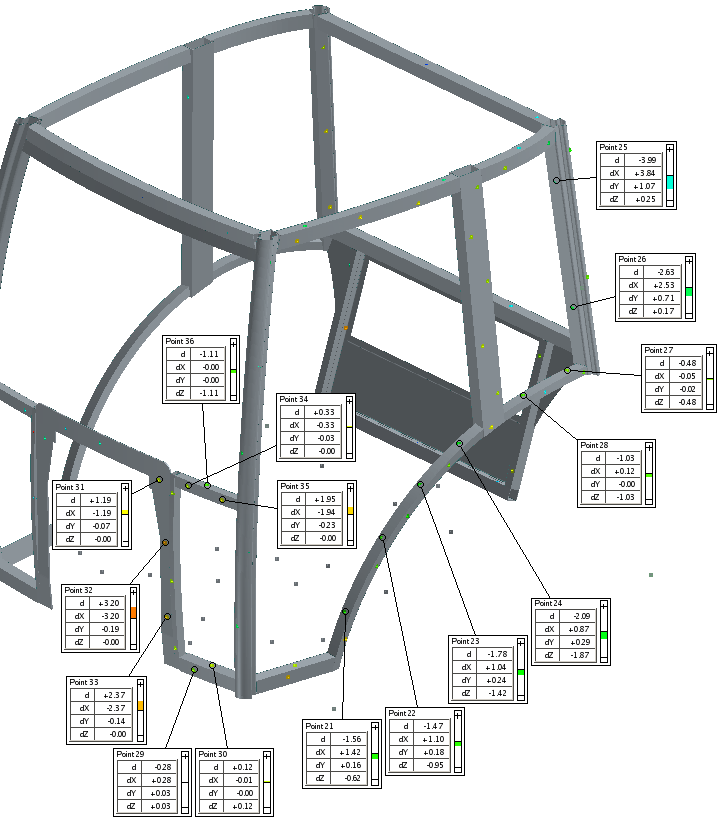 Örnek: Kabin karkasının prototipinin CAD datasından sapmasının TRITOP'la ölçülmesi