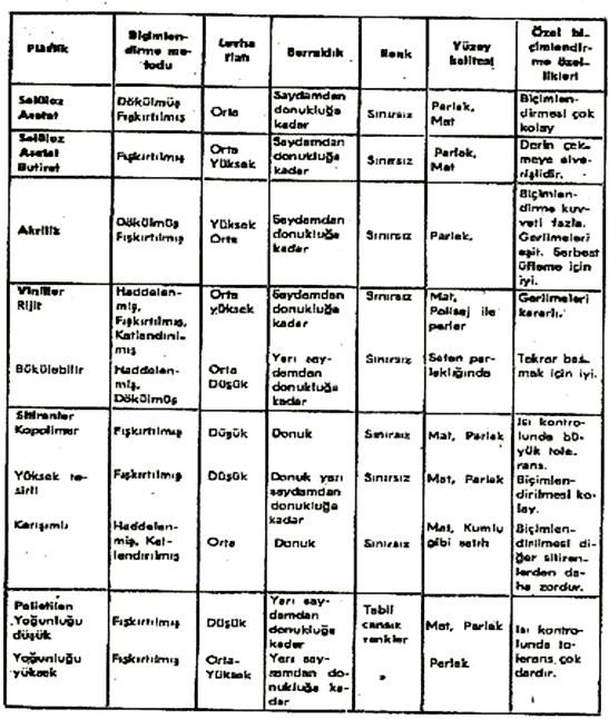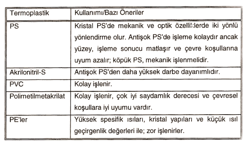 Isıl şekillendirme ile işlemede en yaygın kullanılan bazı termoplastikler;