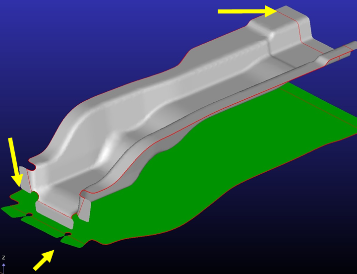 Sac parçaların imalat safhasına baktığımızda açınımı yapılan parça, imalat kısıtları eklenerek (addendum) dizinimi yapılır. Dizinim alternatiflerinin optimumu seçilmesi sonrasında bu dizinim referans alınarak parça geometrisinde kullanıcının girdiği değerler dikkate alınarak değişiklik yapılır. Bu değişiklik dizinim pozisyonunda parçaların adım adım iç içe geçirilmesi şeklinde yapılır. Parçaların birbirine yakınlaştırılması ile parça geometrileri birbiri ile kesişir ve bu kesişimin parça geometrisi üzerine olana etkisi araştırılır. Kesişim bölgesini hem 3 boyutlu geometride hem de 2 boyutlu yerleşimde görerek incelenmesi gereklidir. Bu yaklaşım parçanın tipine bağlıdır, güvenlik parçalarında bunu yapamazken kimi parçalarda ciddi kazanımlar elde edilebilir. Yeni oluşan geometrinin analizi yapılarak aynı statik özellikleri taşıyıp taşımadığı analizi yapılır. Uygun bulunur ise devam edilir.