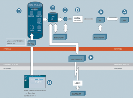 - Tedarikçiler PARTserver-web sistemi üzerinden data sistemine girebilirler. PARTsolutions ile yeni materyaller oluşturabilir veya revizyon edilmiş tedarikçi kataloglarını update edebilirler. Kataloglar yılda birkaç kere revizyona uğrayabilir, bu nedenle ürün değişim bilgilerini almak ve eski bilgileri update etmek gereklidir,