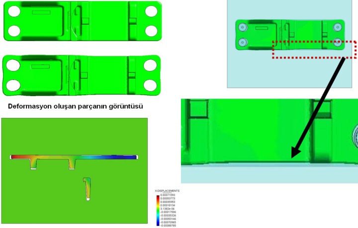 Kullanıcı parça üzerinde gerime ve deformasyon oluşabilecek bölgelerden ölçü alabilir ve kalıp üzerindeki optimizasyonlarını kolayca yapabilir.