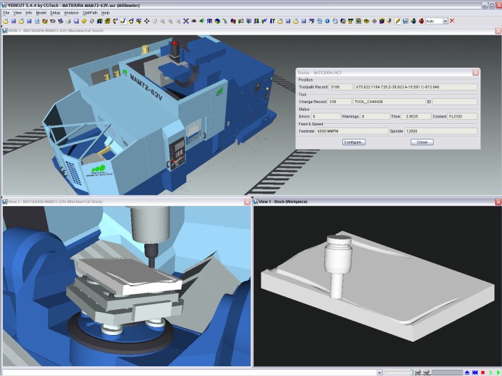 CNC tezgah simülasyonu, verifikasyonu ve işleme optimizasyonu konusunda çok detaylı çözümler sunan VERICUT, özellikle 5 eksenli ve benzeri çok eksenli tezgahların %100 güvenli kullanımını sağlıyor. CAM yazılımından çıkan veya elle hazırlanmış NC kodu üzerinden çalışan yazılımın CAM yazılımlarındaki simülasyonlardan en büyük farkı post-proses edilmiş kod üzerinden simülasyon yapması. Dolayısıyla CAM yazılımında görünmemesine rağmen tezgahta meydana gelen dalma ve çarpma gibi aksilikler önlenmiş oluyor. İçerisinde herhangi bir tezgahın birebir modeli oluşturulabilen yazılım, böylelikle fikstürlerden döner tablaya, takım tutucudan tezgahın kapaklarına kadar bütün parçaların simülasyonunu yaparak, bütün işlemenin tamamen hatasız olarak gerçekleşmesini sağlıyor. Böylece operatörün deneme kesimi yapma ihtiyacı tamamen ortadan kalkıyor.