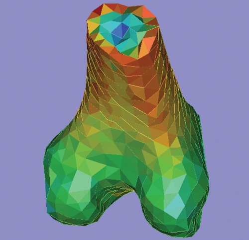 3 Boyutlu obje oluşturulduktan sonra yüzey ağı kalitesi optimize edilmelidir. MIMICS' in "wrap" fonksiyonu ile küçük delikleri kolayca kapatabilir, objenizi düzgünleştirebilirsiniz. Bu yeniden ağ oluşturma (remeshing) kapasitesi (tamamen otomatik) ile optimizasyon aşamasında önemli ölçüde zaman tasarrufu yapılmaktadır.