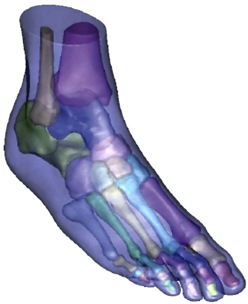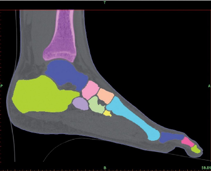 Bilgisayarlı Tomografiden alınan görüntü verileri (DICOM görüntüleri) MIMICS yazılımına aktarıldı. Böylece bağımsız dosyalar ve 3 boyutlu model oluşturuldu. Ayak kemiklerinin ve yumuşak dokularının tam olarak belirlenmesi için 30 farklı bölge tanımlandı.