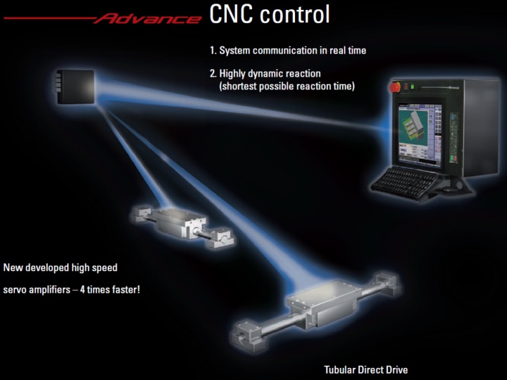 Mitsubishi tarafında geliştirilen ve yeni NA-P modellerinde uygulanan "ağırlık dengeli dairesel lineer tahrik sistemi prensibi, geleneksel lineer motor prensibi olan kömür, mıknatıs ve tabla arasında yer alan yatakların pozisyonu ile karşılaştırıldığında çok daha büyük gelişimler ve avantajlar sunmaktadır. Dairesellik, paralellik çok daha dar toleranslarda elde edilebilmekte aynı zamanda da gereksiz ısı üretimi ve termal genleşme problemleri ortadan kaldırılmış olmaktadır.