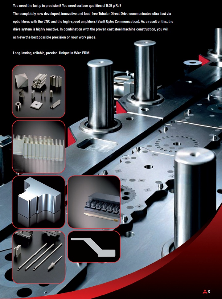 Dar toleranslar, yüksek hassasiyet ve mükemmel yüzey kalitesi günümüzde neredeyse her uygulama konusunun başlıca gereksinimi haline gelmiştir. Bu konuda Mitsubishi diğer üreticilerden ayrı olarak tüm elektronik ekipmanlarını kendisi üreten, bu sayede elektronik uyumsuzluğu ortadan kaldıran ve sadece en yüksek kalitede mekanik bileşenleri kullanan bir tasarım ve imalat anlayışına sahiptir. Tezgah gövdesi, saf su sistemi ve eksen bloklarının tamamı ısı kontrolü altında tutulmakta ve bu sayede ortam ısısından bağımsız olarak erişebileceğiniz en son mikrona kadar tezgahınıza hükmedebilmektesiniz. Elde edilecek yüzey kalitesi Ra 0.05µm dir. Bu mükemmel bileşenler ve yüksek Japon işçilik kalitesi Mitsubishi ürünlerinin yıllardır hak ederek kazandığı güvenilirlik özelliğinin temelini oluşturmaktadır.
