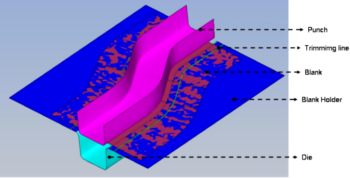 Buradaki amacımız metal şekillendirme işleminde kesme operasyonunun uygulamasıdır. Şekil 1a’da analizde kullanacağımız sacın açılımı görülmektedir. Amacımız analiz sonunda Şekil 1b’de görülen modeli elde etmektir. Son modeli elde etmeden önce uygulanan operasyonlar ; holding, forming, trimming operasyonlarıdır. En son işlem ise cutting operasyonunun gerçekleştirilmesi ve modelin şekil 1b’de görülen son halini almasıdır.
