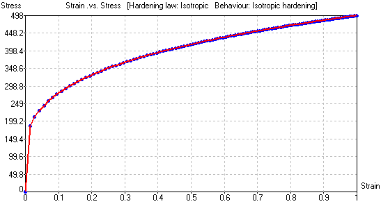 Şekillendirilecek parça için tanımlanan Izotropik hardening malzeme modeline ait gerilme- gerinim garfiği şekil 4’te ve bu malzemeye ait şekillendirme – limit grafiği şekil 5’te görülmektedir. Yazılım içerisinde kullanacağımız bir çok malzeme kütüphanede mevcut olduğu gibi kendi malzeme kütüphanemizi de yaratabilmemiz mümkündür.