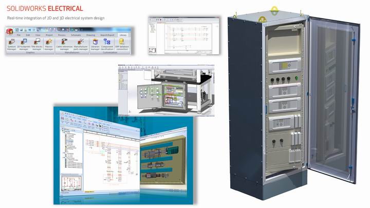 - SolidWorks Electrical 3D -- SolidWorks Electrical 2B sistem düzeyindeki şemaların SolidWorks ile tasarlanmış 3B modellere bağlanmasını sağlayan bir SolidWorks CAD uygulaması eklentisi. Aşağıdakileri içerir: